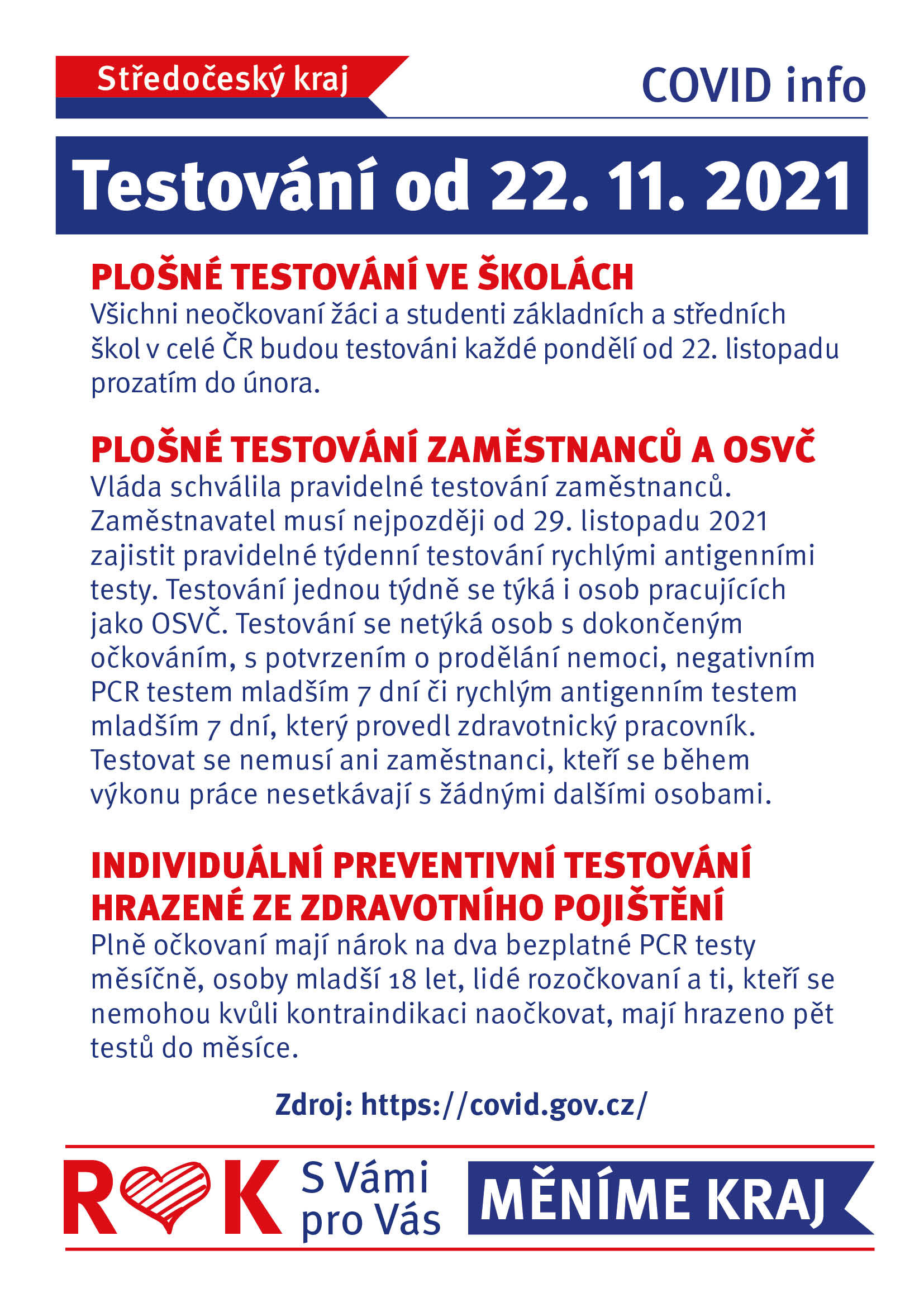 na základě včerejšího jednání vlády a schválených mimořádných opatření Ministerstva zdravotnictví, vláda oproti původnímu plánovanému termínu platnosti zpřísnění opatření povinného nošení respirátorů, nanoroušek či dvou chirurgických na místech, kde se shlukuje více lidí, odložila přijetí tohoto opatření až od čtvrtka. Z toho důvodu termín a informace k tomuto opatření, uvedené v letáku hejtmanky, který jsme již rozeslali a vyvěsili, nejsou platné.