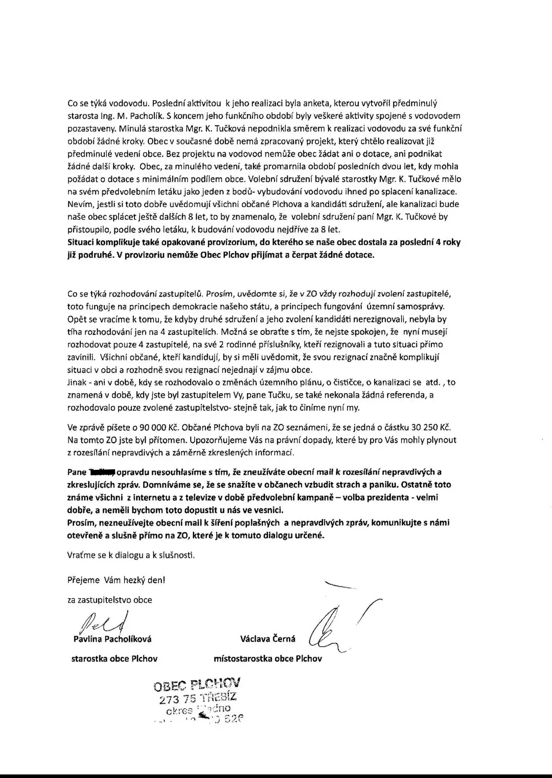 Velmi Vám děkujeme za pochopení. S pozdravem obec Plchov.