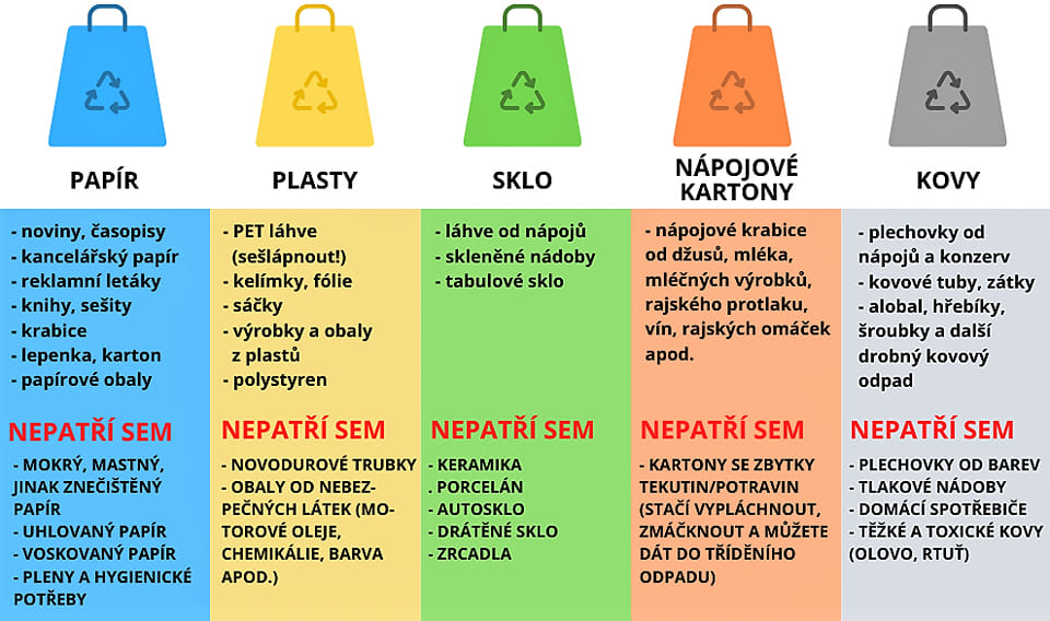 Svoz komunálního odpadu zelená známka a tříděný odpad