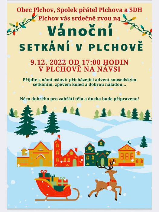 Zveme všechny pěvce a pěvkyně, aby nám pomohli připravit pěknou atmosféru při vánočním setkání, které proběhne dne 1.12.2023 od 17:00 hodin na návsi v Plchově.